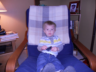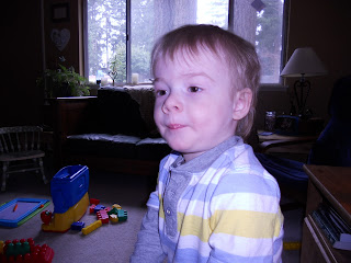 His mommy, Jamie, dropped him off around 9:30, visited briefly, and headed off to work. This was the first time he has stayed with us alone and I think Jamie was a tiny bit anxious as to how he would do...I assured her that he would be fine, as we watched him with our dogs. I was pleased that he didn't even cry when she left.